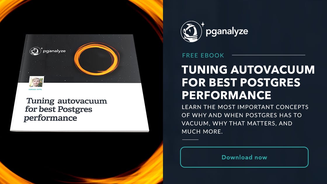 You might remember the launch of our pganalyze VACUUM Advisor back in July 2023. A lot of research has gone into developing this feature and in this new eBook we are sharing our learnings around the most important concepts of why and when Postgres has to vacuum, why that matters, and when it’s best to tune the default settings that control autovacuum scheduling, vacuum overhead, and more. In the book, we provide actionable tuning tips you can use in your specific setup.